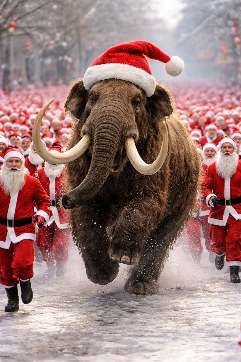 Why did two hundred Santa's cross the road?.. Because after running 5k they deserve a mince pie!